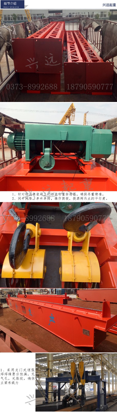 LHE32+32噸電動葫蘆雙梁橋式(shì)起重機 物流簡易集裝箱門吊起重機