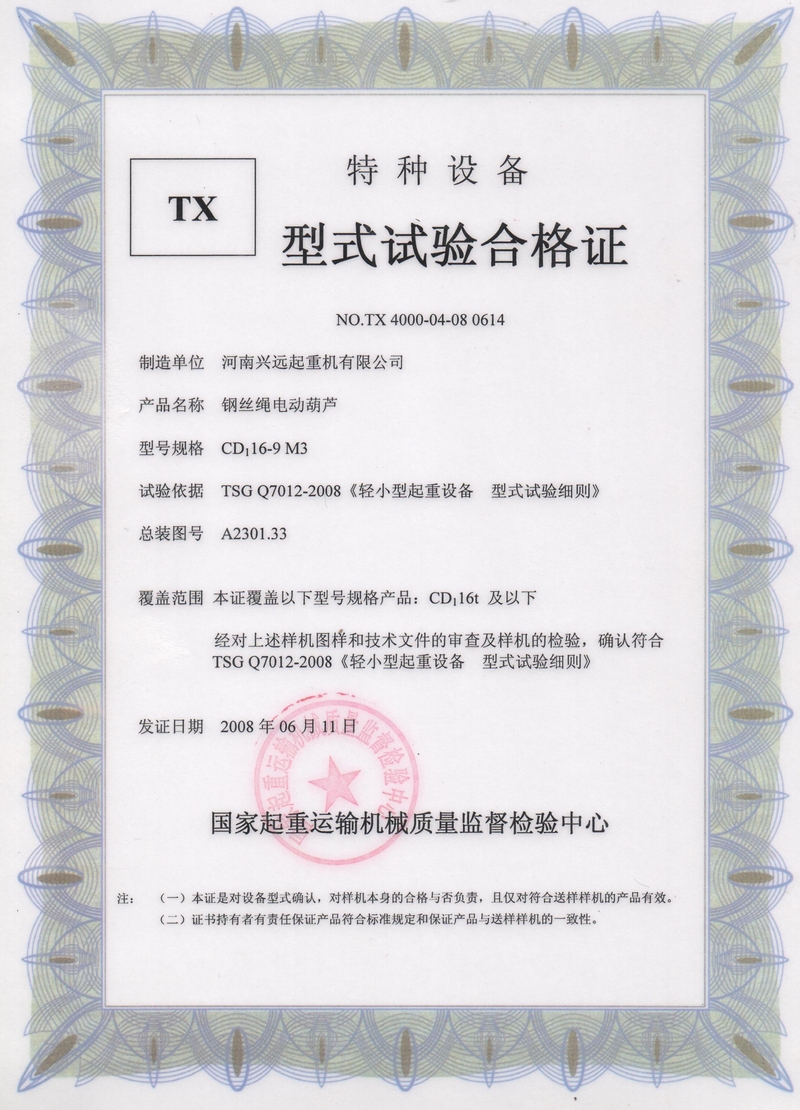 CD16T型式(shì)試驗合格證