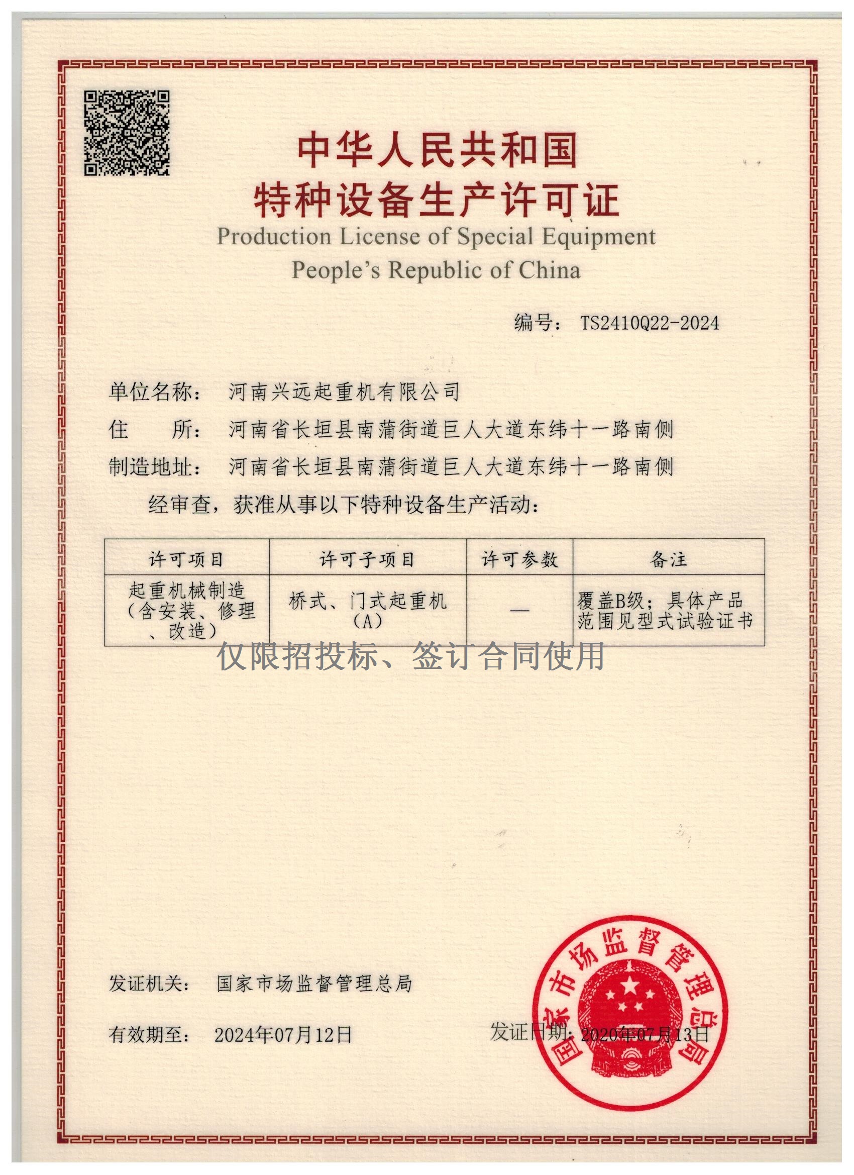 特種設備生產許可證(zhèng)
