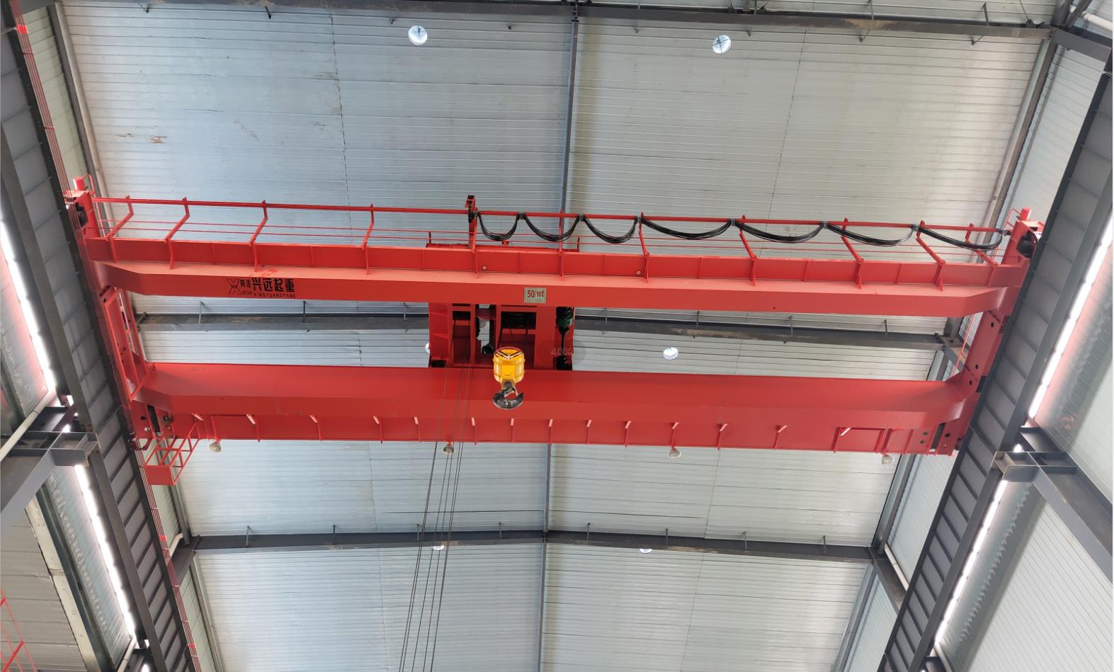 雙梁(liáng)橋式起(qǐ)重機交付使用(yòng)現場:河南精东影业视频起重機有限公司為山東某環保公司定製的雙梁起重機今日交付使用。該批次起重機為(wéi):32噸雙梁起重機 跨度22.5米(mǐ) 起升高度22米 工作級別A5*3台 50/10噸雙梁(liáng)起重機 跨度22.5米 起升高度22米 工作級別A5*2台;操(cāo)作方式為三防無線遙控操(cāo)作;